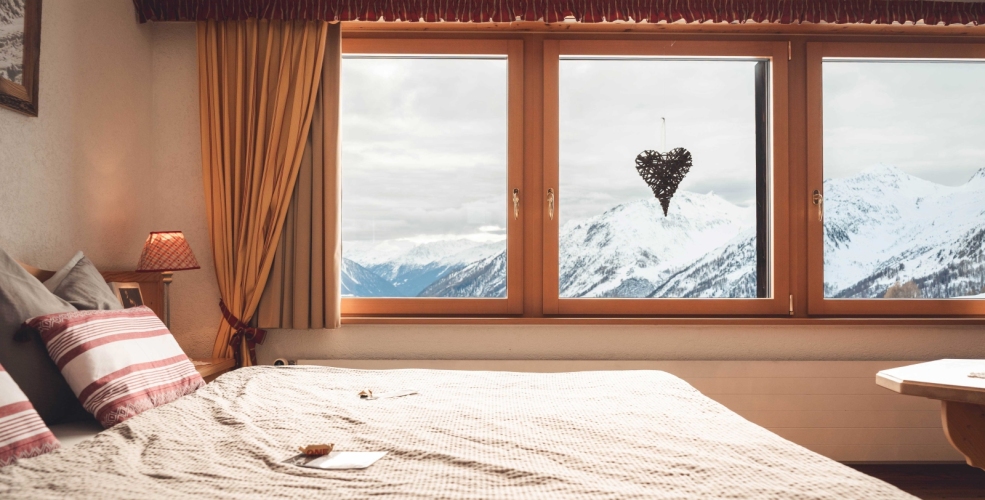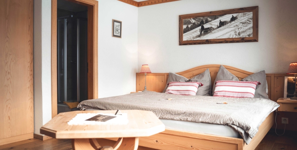 Wer bereits beim Aufstehen über die Pisten- und Wetterverhältnisse bestens informiert sein möchte, ist in unseren Südzimmer mit einem traumhaften Blick auf das Skigebiet und die Berge gut aufgehoben. Das Hotel bietet ein Standardzimmer, welches ausgestattet ist mit: