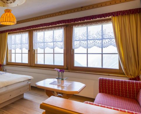 In order to enjoy the get-together, the comfort rooms are additionally equipped with a comfortable sitting area. If you want to be well informed about the piste and weather conditions as soon as you get up, our south rooms with a fantastic view of the ski area and the mountains are the perfect place for you. The hotel offers 7 comfort rooms, which are equipped with: